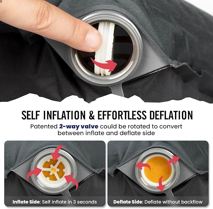- ๐ท ๐๐๐ฅ๐-๐๐ง๐๐ฅ๐๐ญ๐๐๐ฅ๐? ๐๐๐ฌ! โจ - No more struggling to inflate camp pillows with your mouth! Our inflatable travel pillow could self inflate rapidly in seconds thanks to the patented double sided valve which has never been used on air pillows before due to its high cost. But we still decided to go with it because it really makes inflating and deflating a breeze.