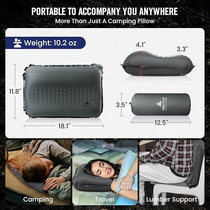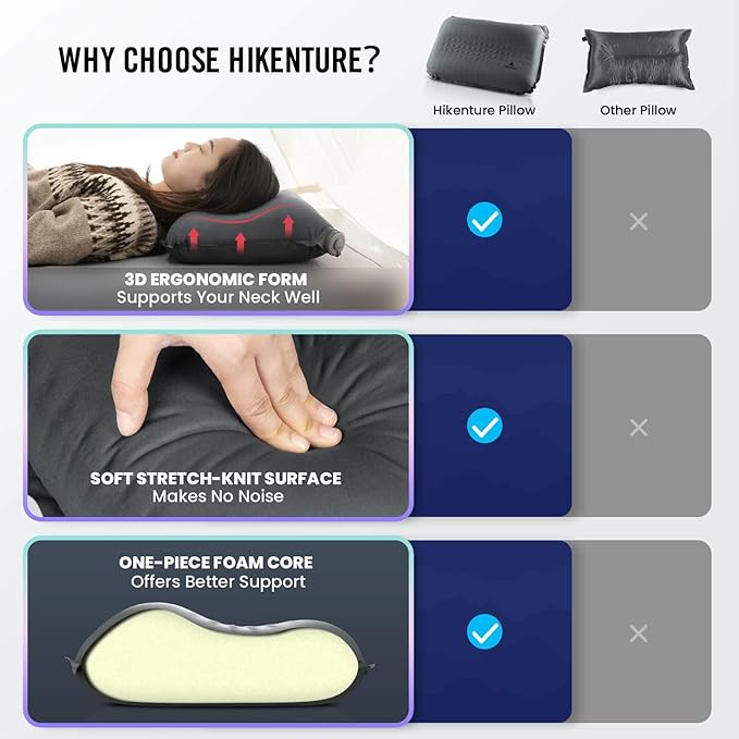 - ๐ช ๐๐ง๐ฃ๐จ๐ฒ๐๐๐ฅ๐ ๐๐๐ฆ๐ฉ๐ข๐ง๐ ๐๐ข๐ ๐ก๐ญ๐ฌ ๐๐ญ๐๐ซ๐ญ ๐๐๐ซ๐ โจ - You may never knew you could sleep so deeply with a good camping pillow. Our inflatable pillow is constructed of bread-like soft, supportive foam in ergonomic curve form plus fine fluffy silent surface, resulting in optimal support for your neck and minimized noise during sleep. Save the camping insomniacs with our backpacking pillow!