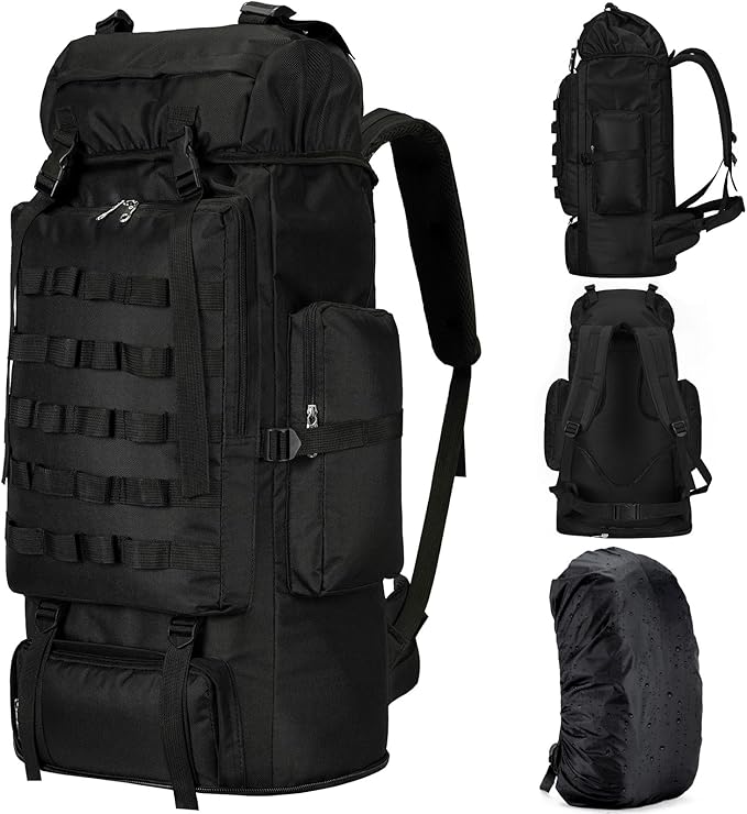 70L/100L Large Camping Hiking Backpack with Rain Cover, Waterproof Molle Rucksack Military Tactical Backpack, Lightweight Backpacking Backpack for Trekking Climbing Outdoor