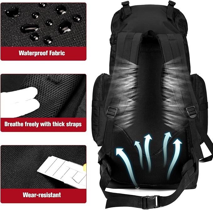 - 【Waterproof and Durable Material】: 100L camping hiking backpack made of 600D high quality oxford fabric for durability, life waterproof and tear resistant. We have specially equipped a free rain cover adds an extra layer of protection, keeping your valuables dry and shielded from rain and dust.