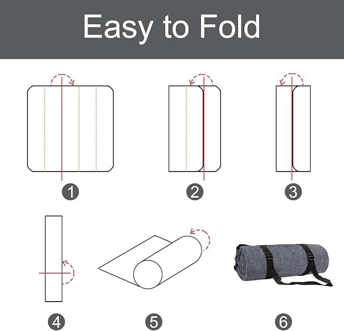 - LARGE SIZE AND FOLDABLE EASILY – This picnic blanket unfold size is about 60’’x80’’, which can fit 4-6 adults to sit, suitable for family use and together with several friends to outdoor activity. And packed size is about 14.5'' x 5.5'', portable and lightweight (about 1.89lbs) to carry out with STRAP and BAG. It is convenient to transport around to any destination.