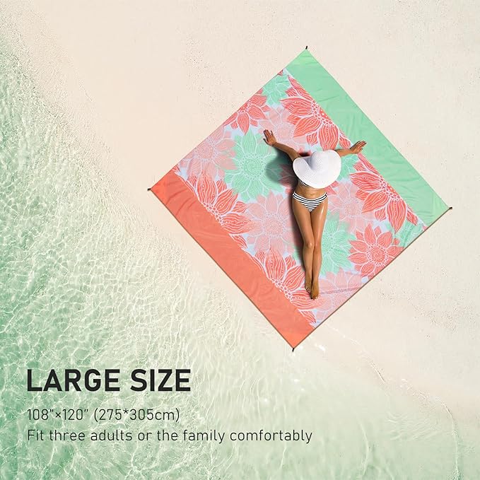 - đ´ăLightweight Beach Itemsă120"*108" beach blanket oversized, weighted 1.65 lbs, fit 1-8 adults, and they can be easily folded into a 5.1"Ă7.5" carry bag.