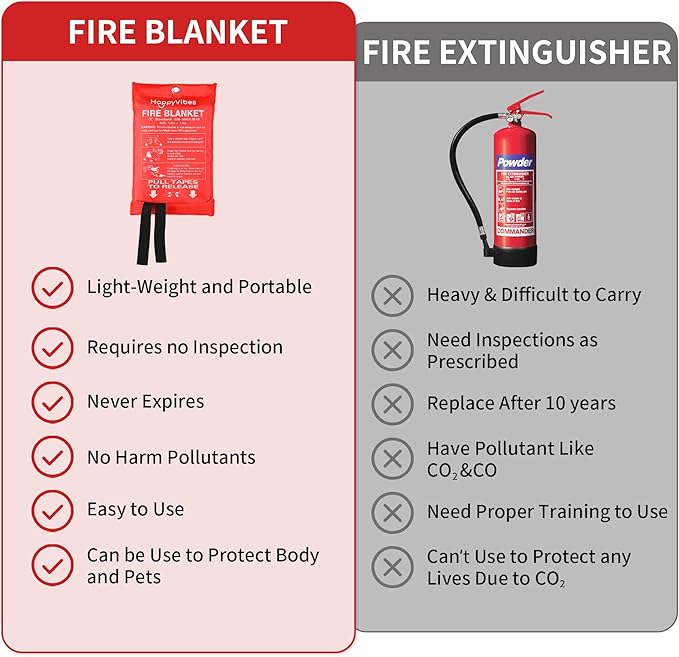 - 🔥 MUST HAVE SURVIVAL FIRE BLANKET KIT: 2-pack fire extinguishing blanket cuts off oxygen with no mess, unlike fire extinguishing spray. Keep these fire blankets in the home, kitchen, backyard, fireplace, grill, office, camping, or as part of your vehicle's survival kit for comprehensive protection