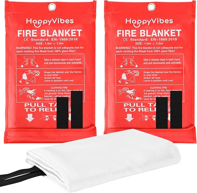 HappyVibes Emergency Fire Blanket for Home - 2 Pack Fiberglass Fire Extinguishing Blanket 40x40 Inches - Fire Blankets Emergency for Home, Kitchen, School, Office, Car, and Grill (Pack of 2)