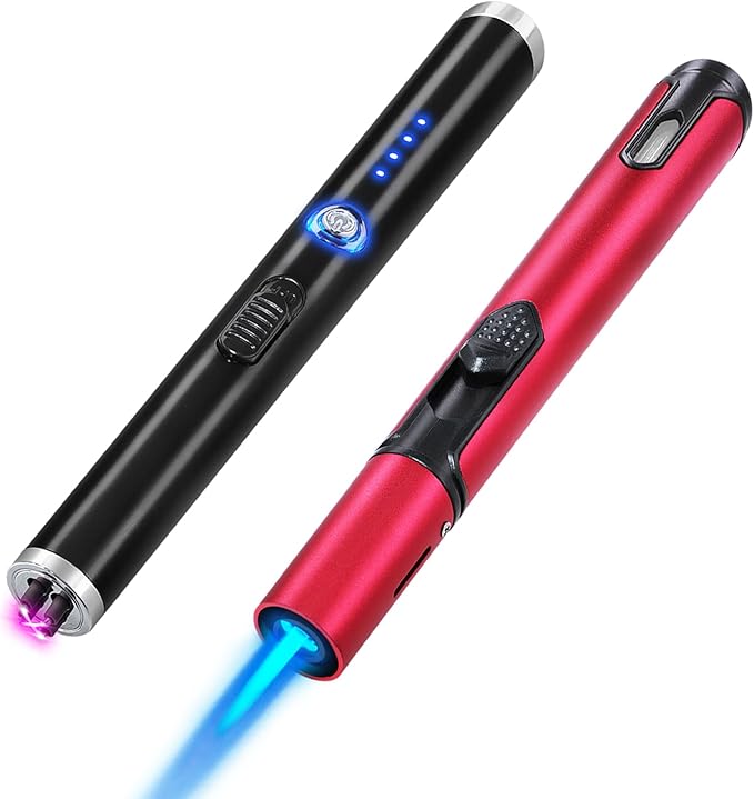 - WHAT YOU CAN GET - Package included: 1 electric ARC lighter + 1 butane torch lighter and 1 USB cable. The usb chargeable lighter is perfect for candles. The torch lighter is a better choice when you need a powerful torch for BBQ, Stove, Wood, Camping. Cost-effective two-pack lighter meets your daily use