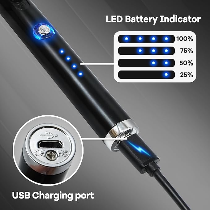 - RECHARGEABLE - Our dual arc lighter is rechargeable via USB cable. You can charge it anywhere with a power source. The electric lighter has 4 LED power indicators, which can show the remaining power of the lighter. It is convenient to use and know when to recharge the battery