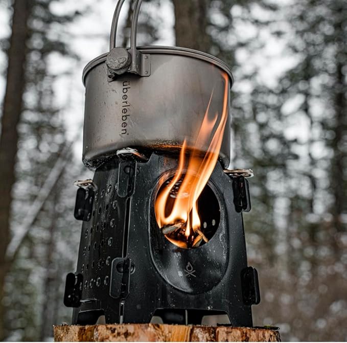 überleben Stöker Wood Burning Camp Stove - Stainless Steel Portable Wood Stove for Camping, Backpacking, & Hiking - 18oz Folding Camping Stove - Small Wood Stove Camping Essentials (Carbon Black)