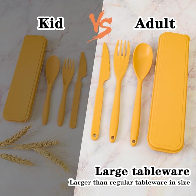 - A practical gift: The portable utensil set has a smooth surface and soft colors. Our wheat straw utensil set is the perfect gift for family or friends.