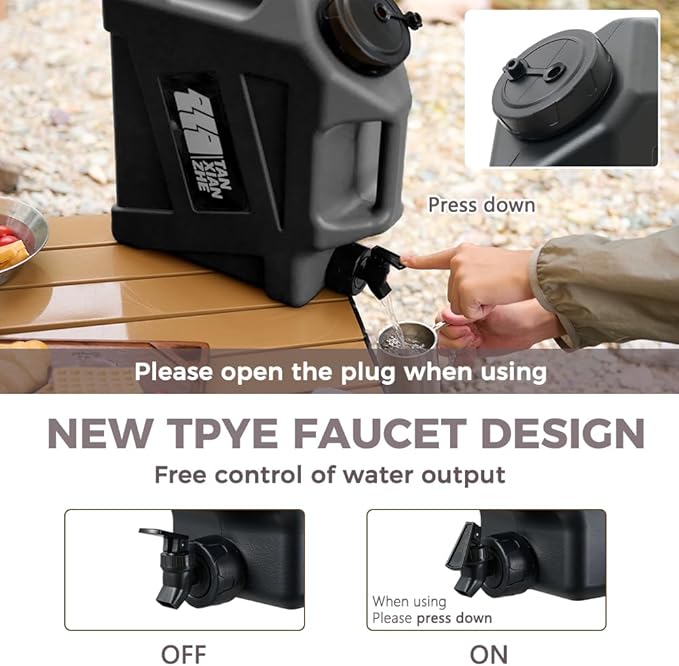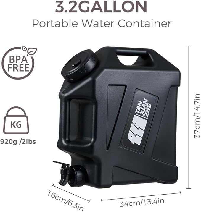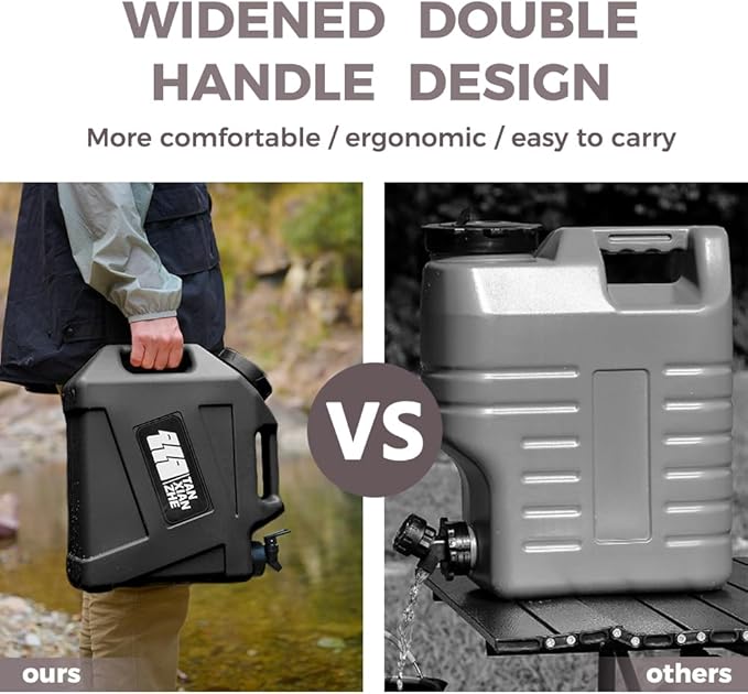 - 【Ergonomic Thickened Dual Handle】A 3.2 gallon water storage container with a faucet weighs only 920g/2 pounds. Paired with an ergonomic dual handle design, the handle angle can be freely selected. This portable water jug can be perfectly placed in the car trunk,suitable for outdoor usage.