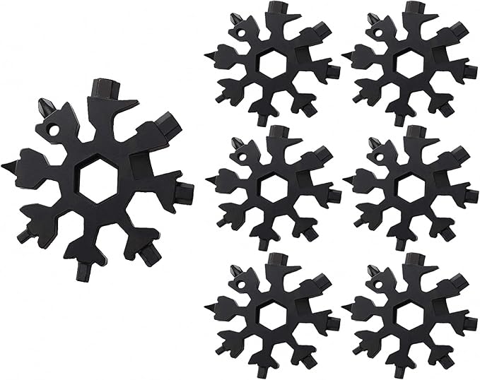 6PCS 19-in-1 Snowflake Multitool, Portable Stainless Steel Wrench,Bottle Opener/Flat Phillips Screwdriver Kit/Wrench for Outdoor Camping,Travelling for Christmas Gift(Black)