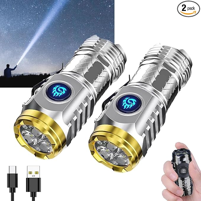 - [Small Flashlights LED] --- People cannot do without prevention, so be prepared for travel and women traveling at night. A sudden flash of light in the dark will instantly blind you and give you a fatal blow! Type-c fast charging interface, safe voltage continuous power supply, built-in smart chip, battery protection, both fast charging and battery life.