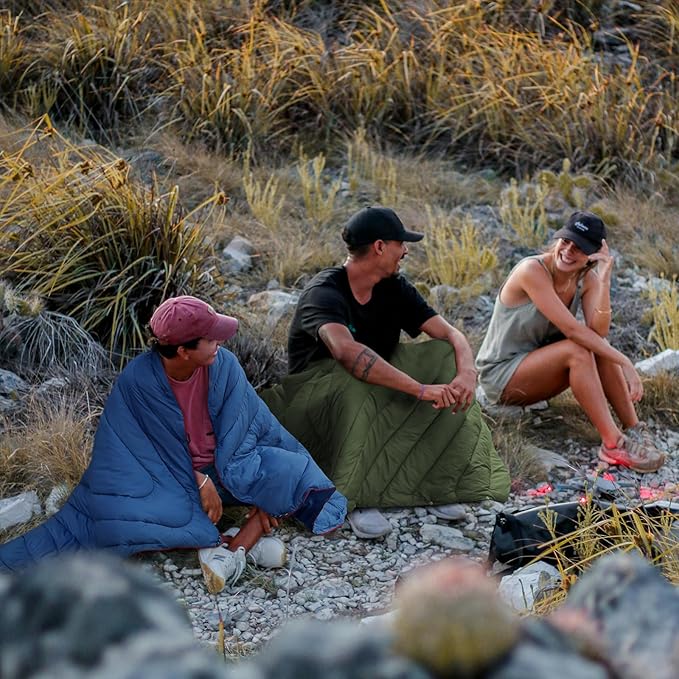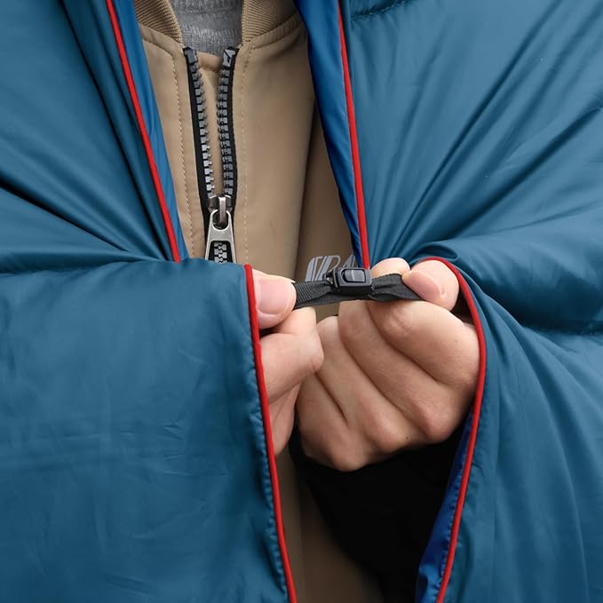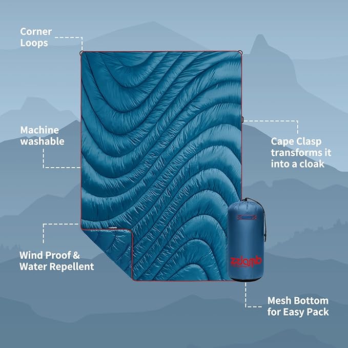 - Functional Designs: The poncho clip or snaps design could transform the puffy camping blanket into a cloak and make your hands available while you are drinking, eating, chatting or doing some campsite tasks and still keep you warm. Loops at the four corners allow you to stake the blanket into the ground and you can use it as a picnic mat and lie down. Attention: two versions of quilted lines are sent in random. Please kindly accept it