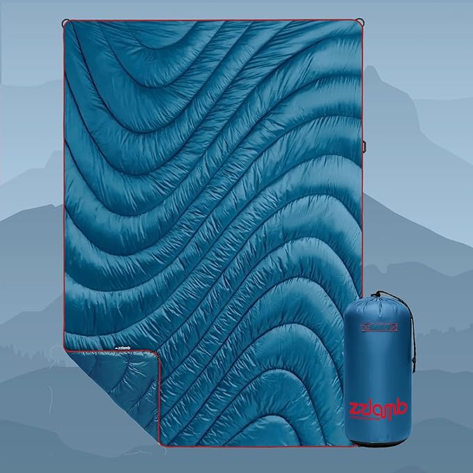 zzlamb Camping Blanket, Lightweight Cloak Puffy Down Alternative Travel Blanket, Portable & Windproof Warm Outdoor Blanket, Cozy Quilt Plane Car Picnic Hammock Beach Backpacking, 52x75in