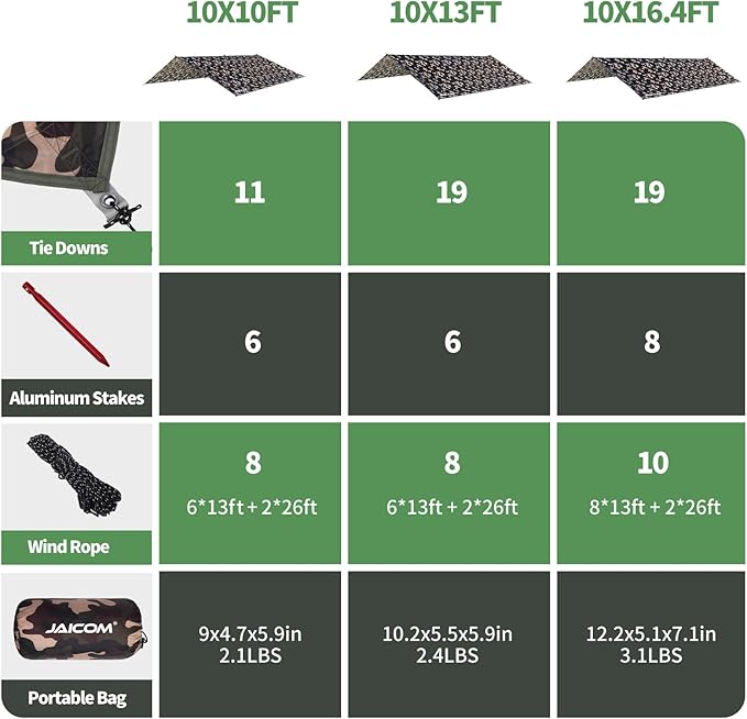 - Best protection: The JAICOM Camping Tarp is made from 210T tear-resistant polyester fabric that is highly abrasion resistant. The seams are all press-glued and the fabric has a waterproof coating, making our tarp highly waterproof. It gives you strong protection no matter how extreme the weather is.