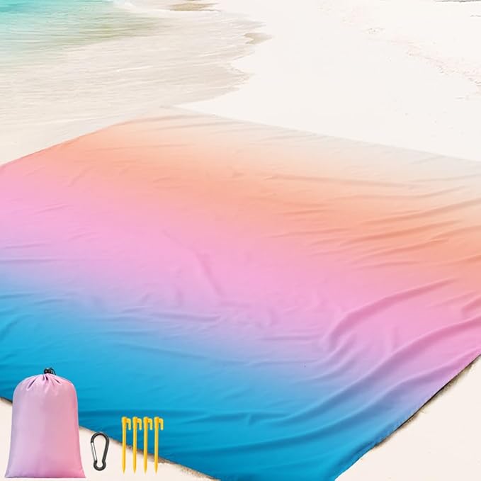 - 【OUTSIDE BEACH BLANKET】1 * Sand Proof Beach Mat;4 * Durable ABS Anchors Stakes; 1* Carabiner; 1 * CARRY BAG