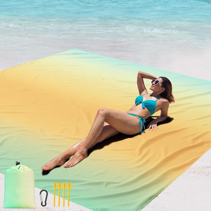 - 【OUTSIDE BEACH BLANKET】1 * Sand Proof Beach Mat;4 * Durable ABS Anchors Stakes; 1* Carabiner; 1 * CARRY BAG