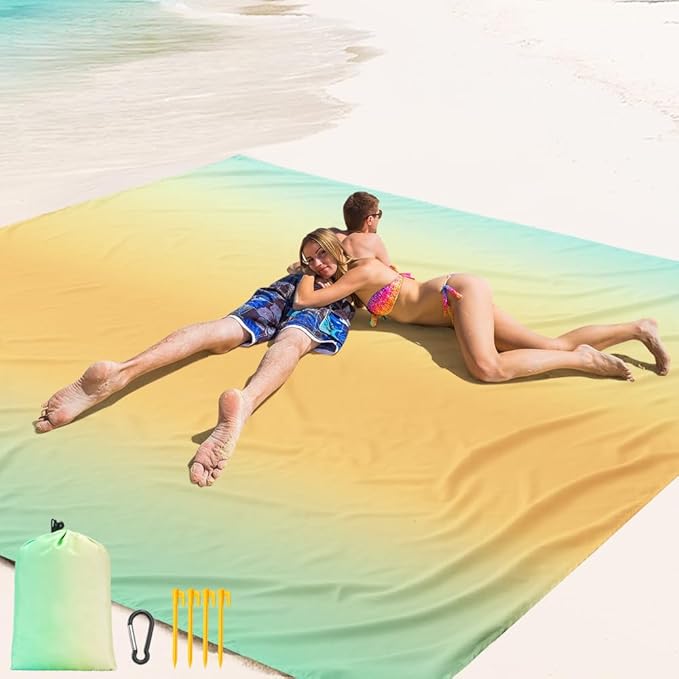 Beach Blanket Waterproof Sandproof Beach Mat 79" X 83" /10'x9'for 2-8 Adults Quick Drying Outdoor Picnic Mat Beach Accessories for Travel, Camping, Hiking