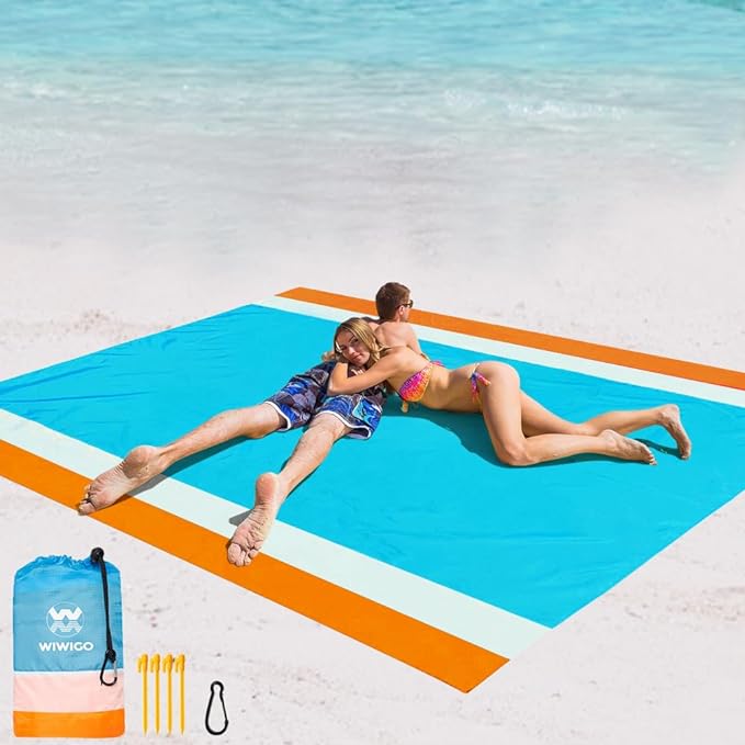 Beach Blanket Waterproof Sandproof Beach Mat 79" X 83" /10'x9'for 2-8 Adults Quick Drying Outdoor Picnic Mat Beach Accessories for Travel, Camping, Hiking