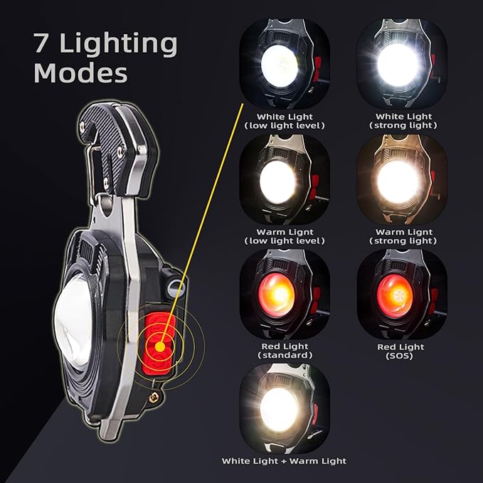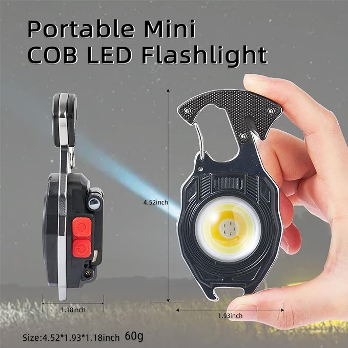 • 【Multiple Functions】This keychain flashlight features multiple functions to meet your various needs. It can be used as a regular flashlight, a work light, a COB flashlight, and even a screwdriver. The screwdriver tip can be used to open bottles and cans, making it a versatile tool for outdoor adventures.