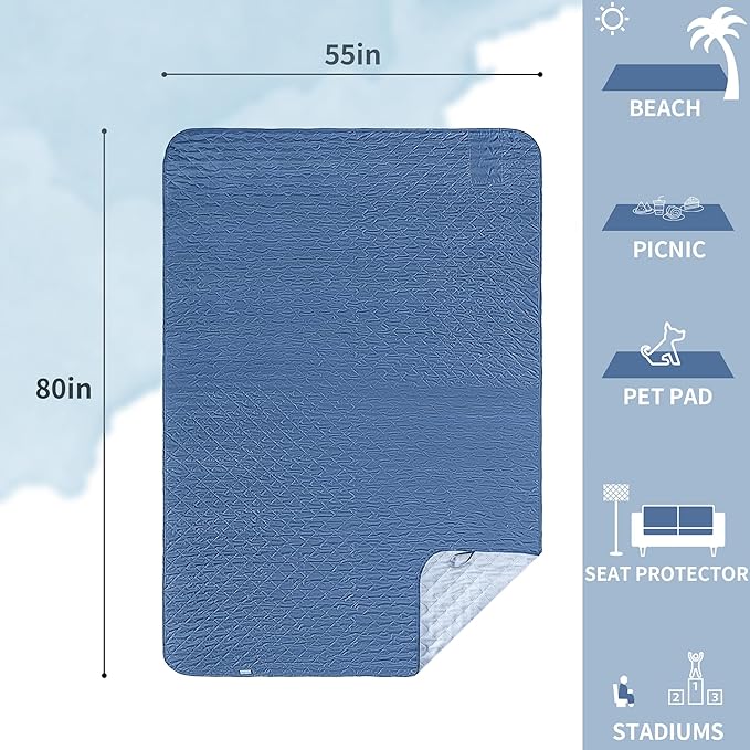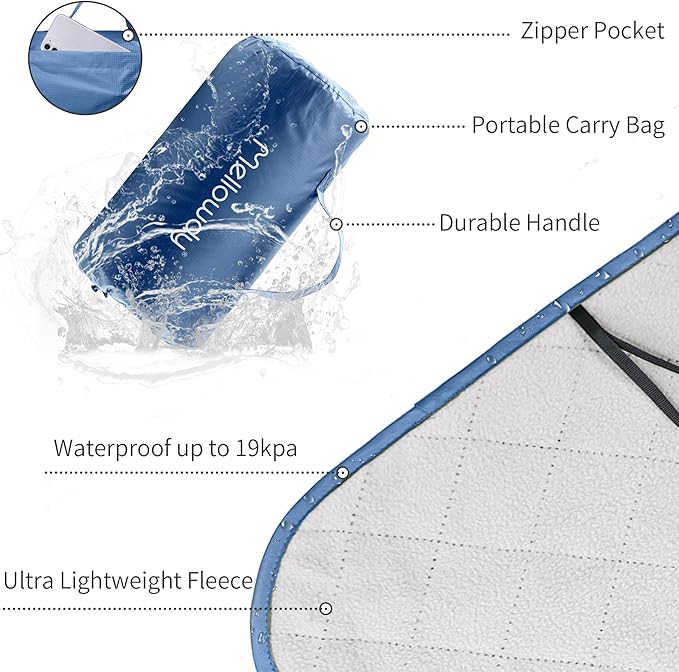 - 🏖️Rugged for your adventures: Waterproof coating on the reverse side up to 19kPa. Premium, no-pilling, warm fleece surface to keep you warm and comfortable. It's your trusty sidekick for camping, travel, chilling on the beach. You can also use it as a rain/wind guard for going to concerts or watching games in a stadium.