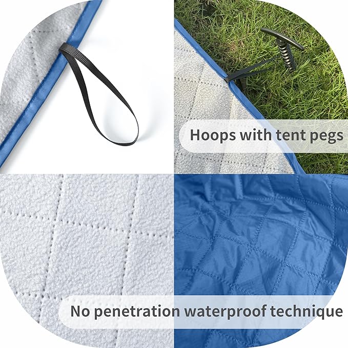 - 🏖️Useful accessories: Comes with a carrying bag for storage and can be used as a pillow in a pinch. Designed with built-in hoops for tent pegs (included) to hold the blanket in place against wind.
