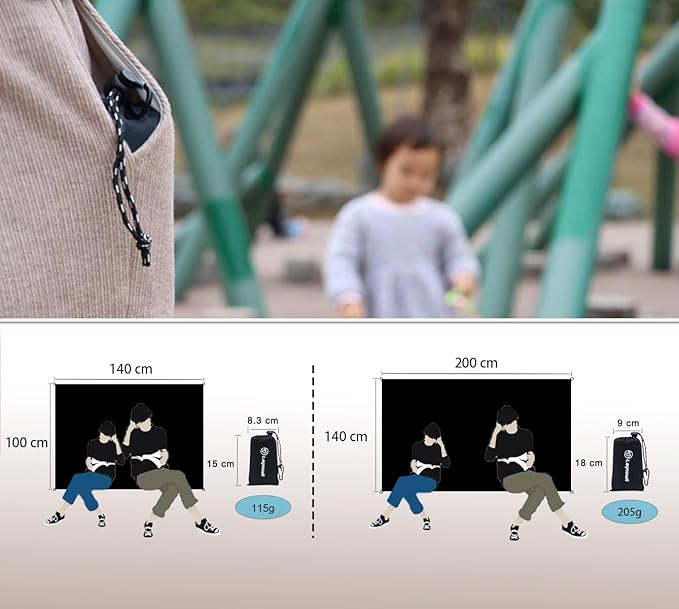 - Foldable, Compact, Lightweight -This 55" x 39" packable blanket is large enough for 1 Adults or 2 Children to sit comfortably while compact picnic blanket can be folded and put in given drawstring bag. It fits purse and small bag well. it’s so compact even can be put in your pocket. Hook it onto your backpack, throw it in your bag or keep it in your car. It’s less lightweight than most smartphones, a perfect small picnic blanket for outdoor recreation, a good small tarp as ground cover.