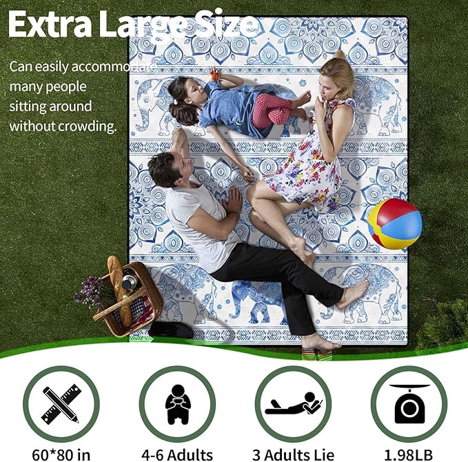 - 【Extra Large Picnic Blankets Size】 Our picnic blanket has an unfolded size of 60*80 inches, which is spacious enough to accommodate 4-6 adults. Whether you're spending quality time with family, friends, or loved ones, this wide area will provide enough space for everyone to enjoy the outdoor picnics.