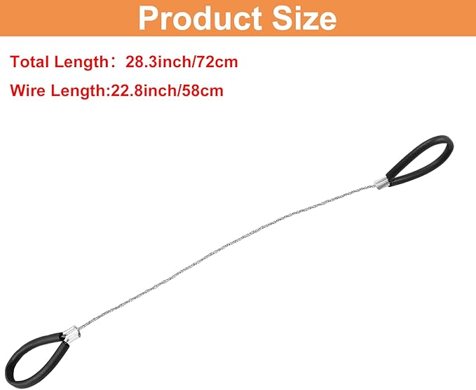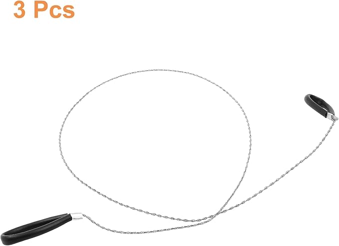 - What Will You Get: 3Pcs Wire Saw. The saw length of the steel wire is about 55cm/21.65inch, and the total length is about 65cm/25.59inch.
