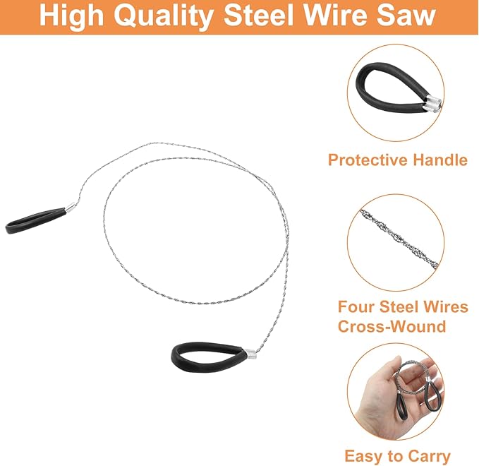 - Convenient to Carry: Camping wire saw is an essential item in any survival backpack. It is compact and lightweight, making it easy to carry without taking up much space in your backpack, allowing for convenient storage.