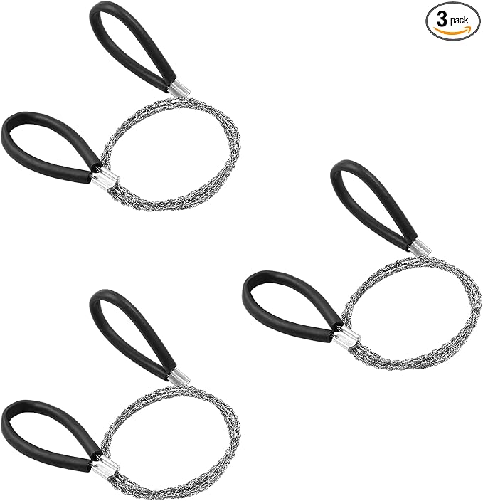 3 Pcs Stainless Steel Survival Wire Saw 21.65 Inch, Garrote Wire Cable Saw String Saw, Emergency Pocket Saw Rope Saw Hand Tool for Wood Cutting Hiking Hunting