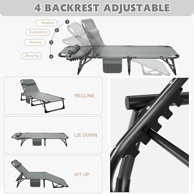 ABORON Folding Camping Cot W/Mat for Adults, Adjustable Heavy Duty Outdoor Bed,1200 D Layer Oxford Travel Camp Cots