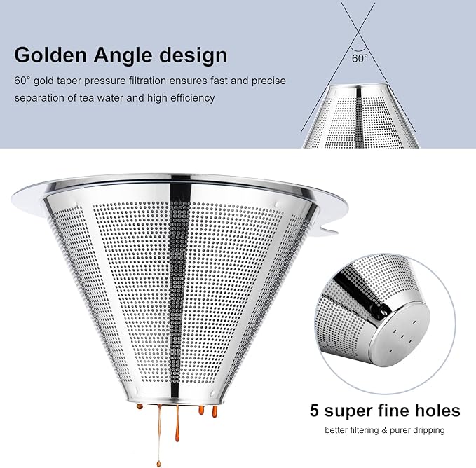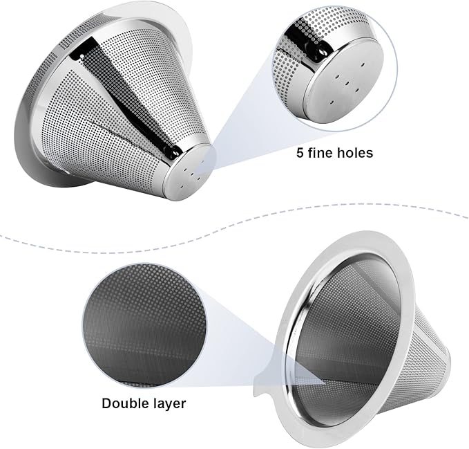 - 800 mesh super fine mesh locks richer coffee flavor.bottom 5 fine holes.wait for the pour over filter to drip out,So that the coffee nature flavour is reserved,without any other smell.