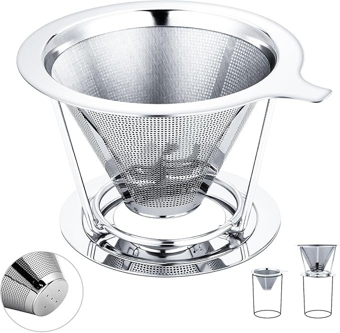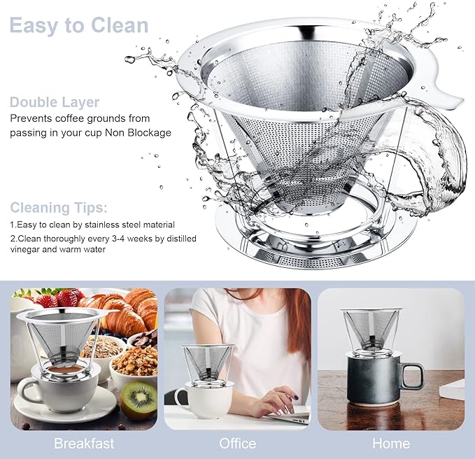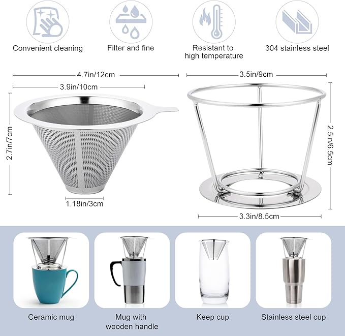 - With our coffee cone filter from durable stainless steel.just rinse and wipe it dry or place it inside your dishwasher.easily clean our coffee filter,the filter can be used always for you.