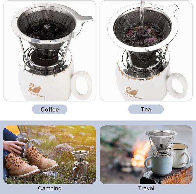 - Compact and lightweight.pour in hot water,and enjoy,the coffee dripper works great at home or office,while traveling or camping,that gives you the power of a professional barista for every cup.