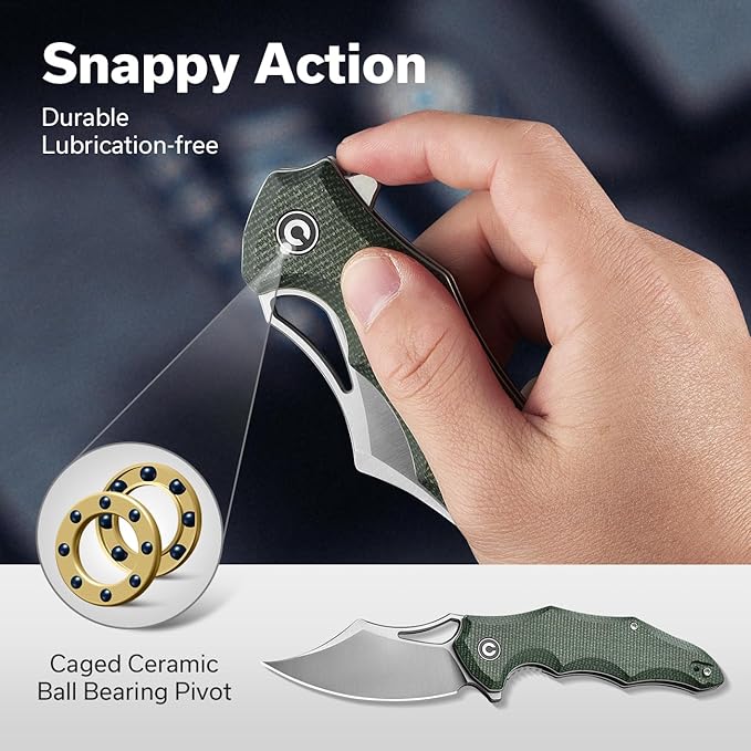 - Snappy Action --- Thanks to the durable, lubrication-free ceramic ball bearing pivot of the folding knife, the thumb hole and flipper opener provide smooth opening pleasure. The liner lock remains securely locked while performing tasks.