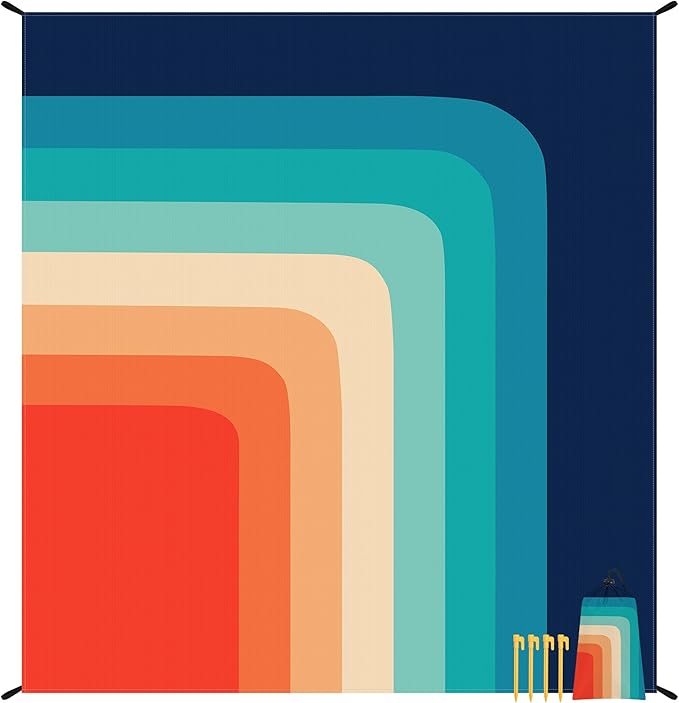 - Windproof Design with Secure Anchoring: Designed with beachgoers in mind, our sand free beach blanket features a robust wind-resistant design. Waterproof picnic blanket comes equipped with 4 ABS plastic stakes and 4 corner pockets, ensuring that your relaxation spot stays firmly anchored even on breezy days
