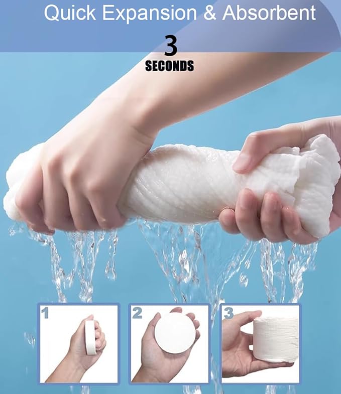 - Better Absorbency: Compressed towels absorb water better than regular cotton towels because they have larger pore structures between the fibers and can absorb water more quickly, You can use them many times.