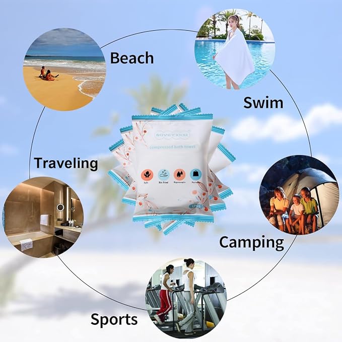- Large Size: Original size diameter 2.75 inch,Put it in water for several seconds and will be expansile become large compressed towels of 56 x 28 inches(same size as most hotel bath towels), Each is individually packaged, cleaner and safer.