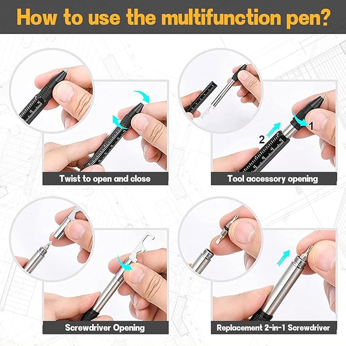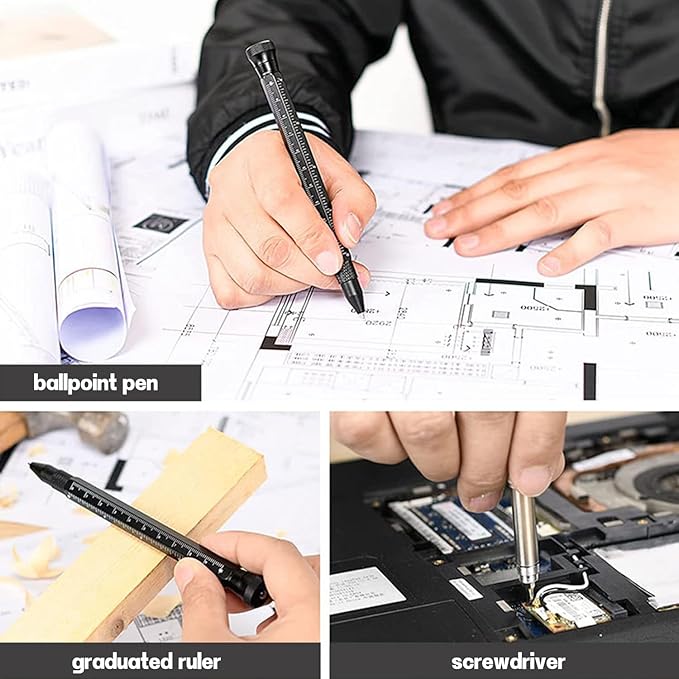 - 【Best Gift for Men】—If you want a satisfying gift for men, the multi-tool pen is a perfect gift for dad, men, husband, boyfriend, grandpa on Father's Day, anniversary, birthday, Thanksgiving and other unforgettable days Unique gift. Anyone who receives a multifunctional pen as a gift will love it! Excellent men's construction work accessories.