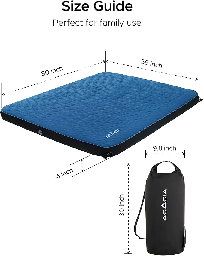 - Durable and Reliable: Made with 150D Oxford fabric and TPU coating, our camping air mattress is abrasion and tear-resistant. Heat-molded sealing ensures it stays inflated for a long time. Enjoy peace of mind with ACACIA’s lifetime customer support and a 3-year warranty