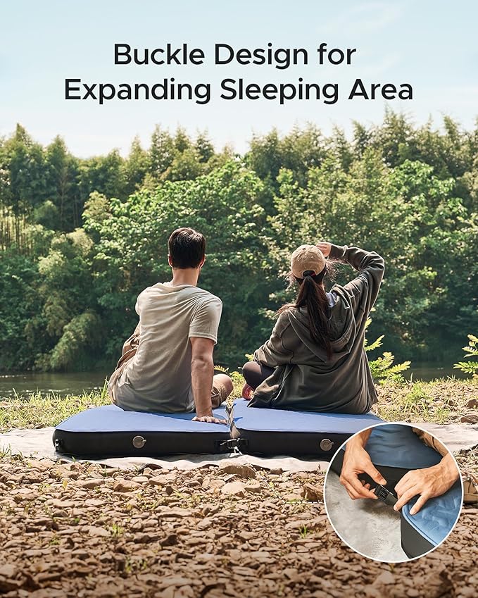 - All-Season Insulation: With an R-value of 6, our sleeping pad for camping provides excellent insulation for both winter warmth and summer breathability. Side buckles allow for easy attachment of multiple camping mats to expand your sleeping area