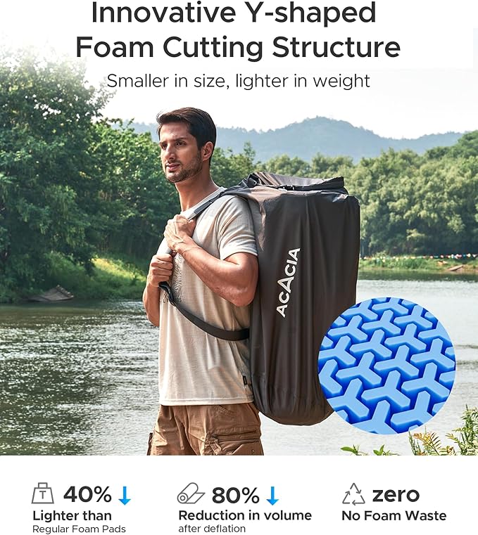 ACACIA 4" Thick Self Inflating Sleeping Pad with Foam, Innovative Y-Shaped Telescopic Structure, Ultraportable Camping Air Mattress with Pump Sack, Outdoor Compact Sleep Bed for Travel Tent Car