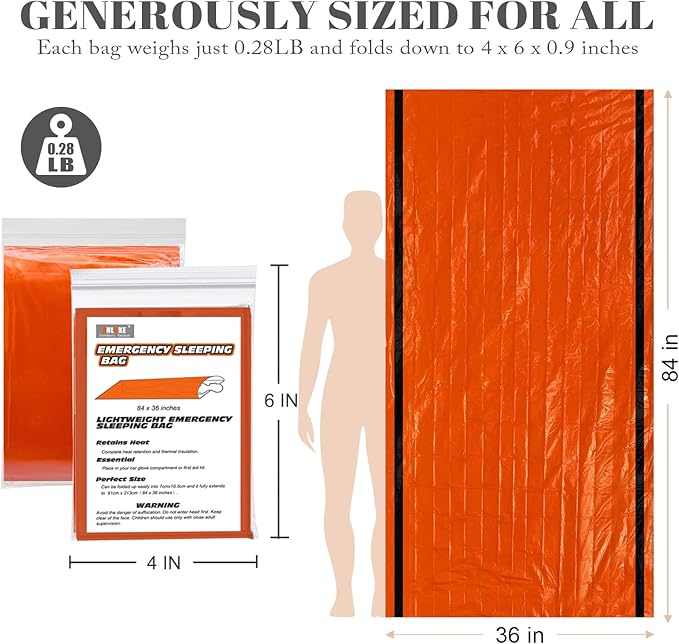 - GENEROUSLY SIZED FOR ALL - Measuring 84" x 36", each Mylar sleeping bag comfortably accommodates adults or children, ensuring that anyone, regardless of size, can be protected in emergencies.