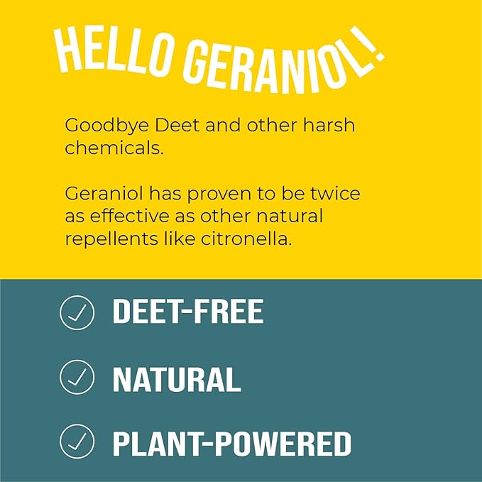 - NATURAL MOSQUITO SPRAY ALTERNATIVE - Geraniol can fend off insects by binding with the General Odorant Binding Proteins in the insects’ antennae. It helps to disrupt the host's scent. Outside studies have shown that geraniol can be more effective than citronella or DEET… Plus, we are working on our carbon footprint with partially compostable packaging.