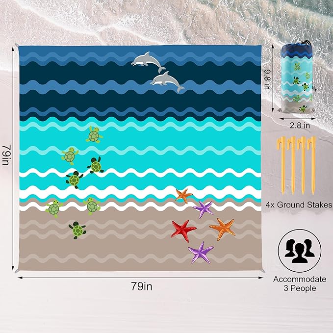 Beach Blanket Waterproof Sandproof, 79x79Inch Sand Free Beach Mat, Quick Drying, Light Weight and Portable Outdoor Picnic Mat for Travel, Camping