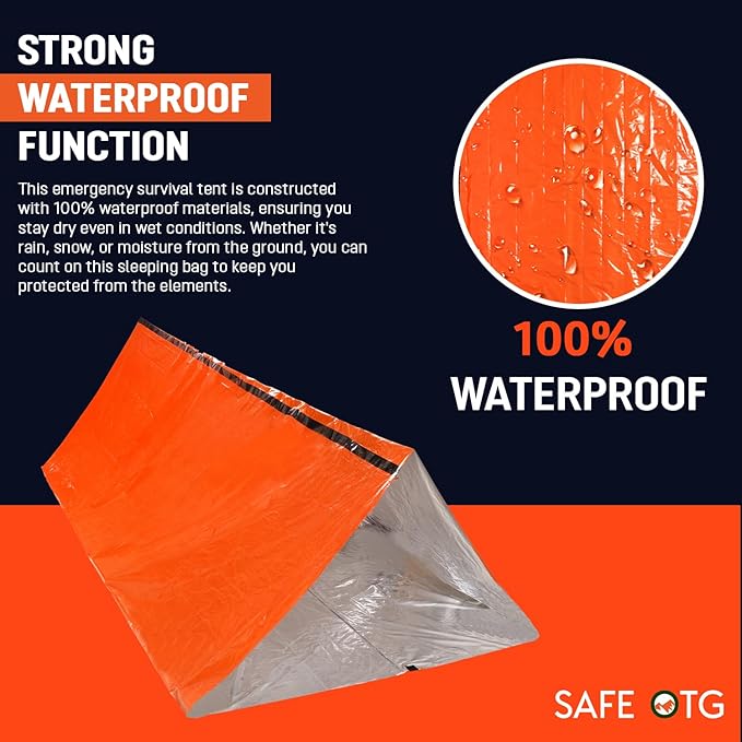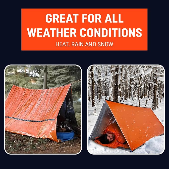 - Rescue Essential: Perfect for emergency situations where warmth or protection from extreme weather conditions is required. Like sudden weather changes, disasters, earthquakes, rain, snow, hail and windy conditions. These insulated life tents make you safe in any weather and prevent hypothermia and shock by retaining up to 90% of the body heat.