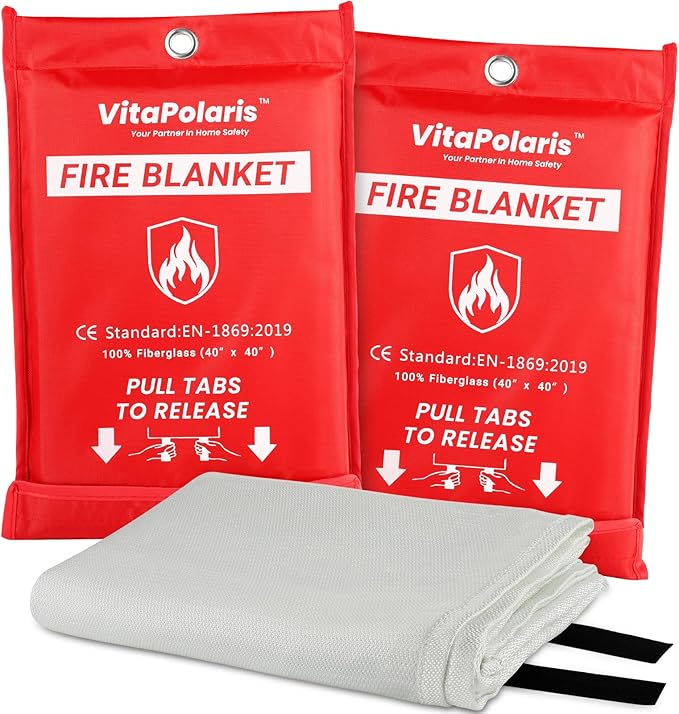 2024 Heavy-Duty Emergency Fire Blanket for Home and Kitchen - 40” x 40” Fiberglass Fire Blanket - Class K Fire Blanket for Home,Kitchen,Grill,Car (2PACK)