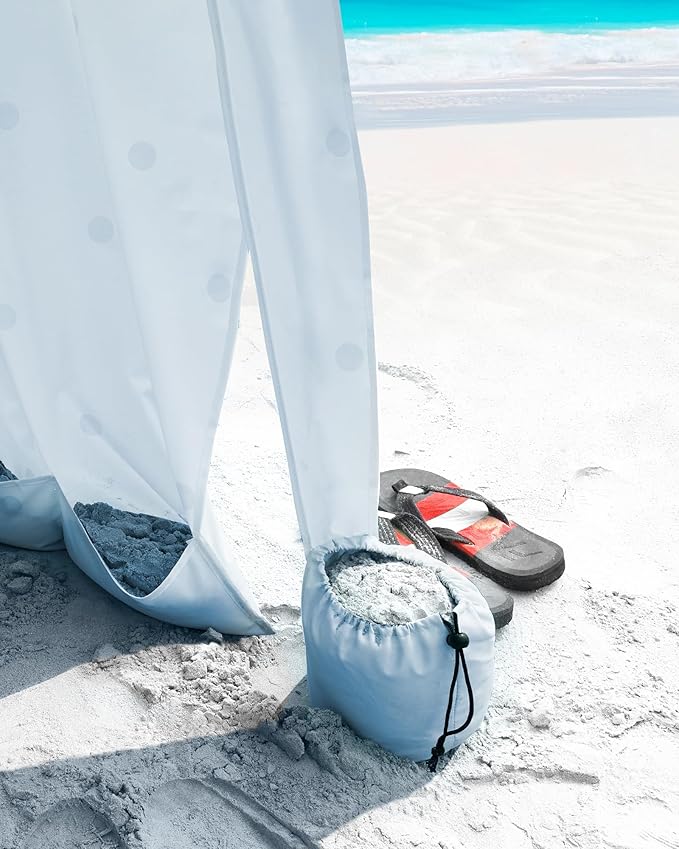 - Stable Beach Cabana with Sandbags: Sturdy and durable fiberglass structure holds the roof. Comes with 4 stakes and built-in sandbags at each corner to keep the beach umbrella firmly anchored on sand, grass, or other surfaces.