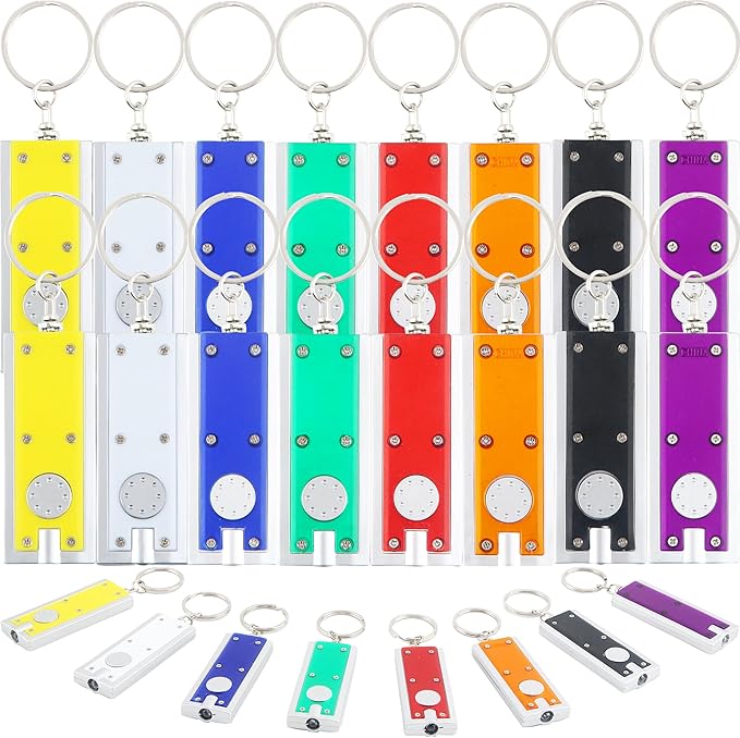 - Package includes: you will get 24 pieces of mini flashlight keychains in 8 different colors: purple, orange, red, yellow, blue, green, black and silver, 3 pieces of each color. The quantity is enough for your daily use or outdoor activities, bringing you more safety in the dark