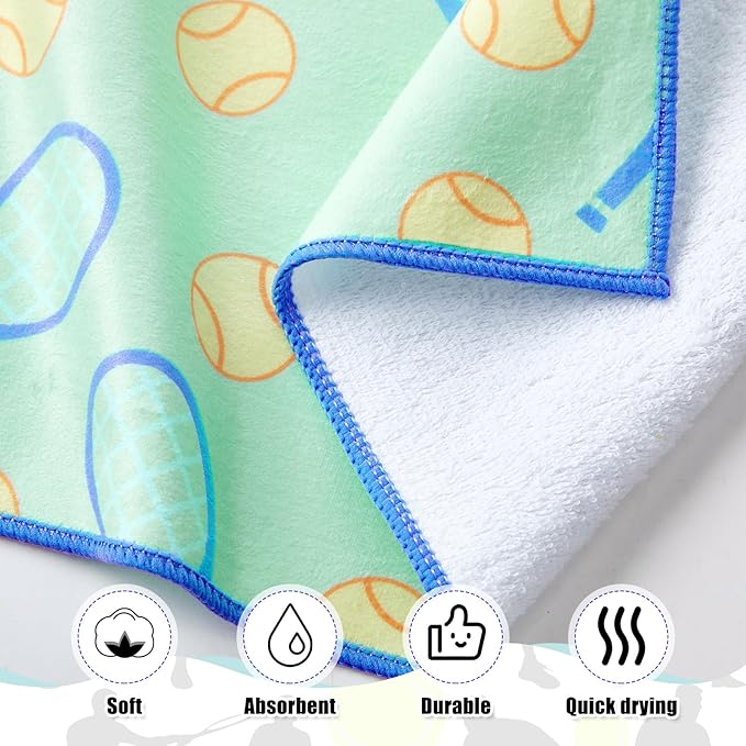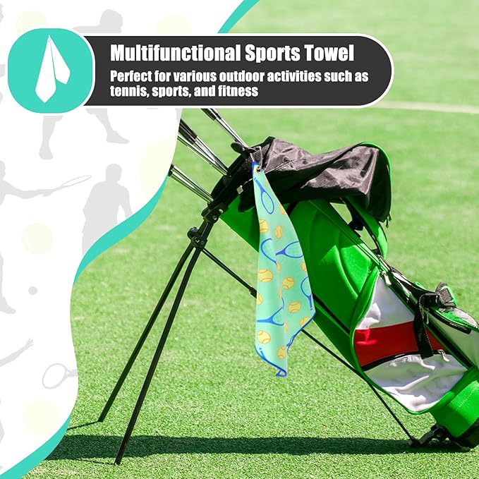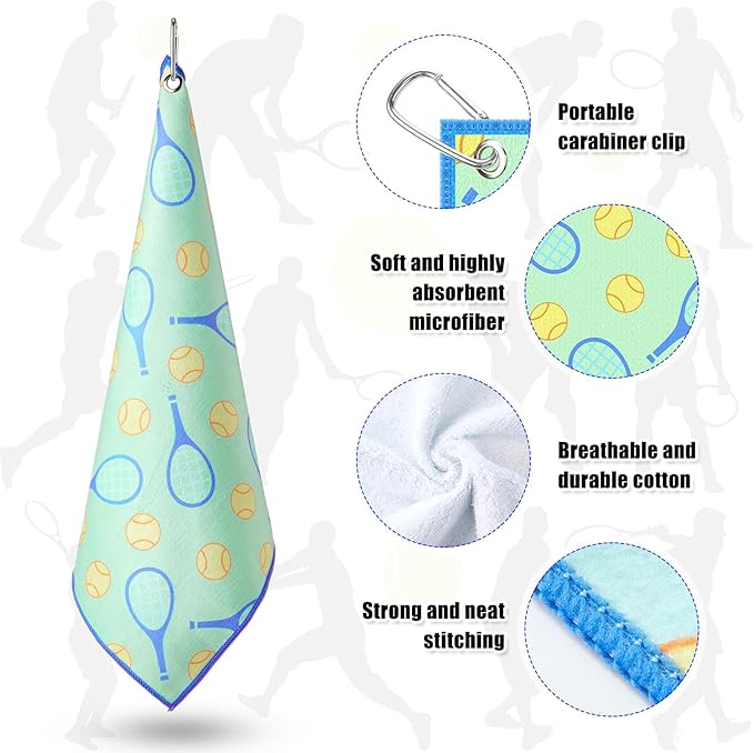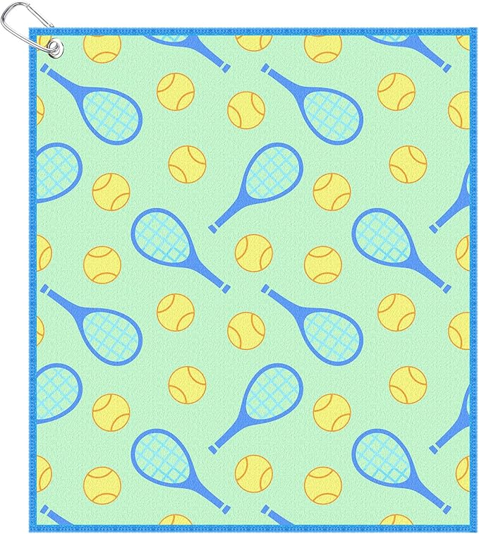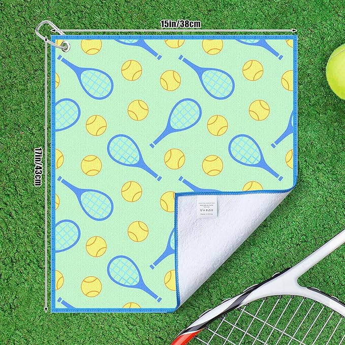 15 x 17 Inch Microfiber and Cotton Sports Towels Athletic Sports Gifts Funny Prints Sports Themed Gifts with Hook Clip for Men Women Sports Gym Accessories (Green,Tennis)